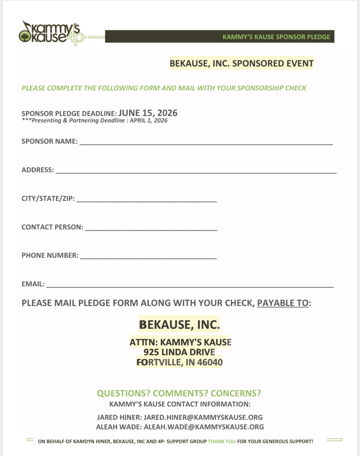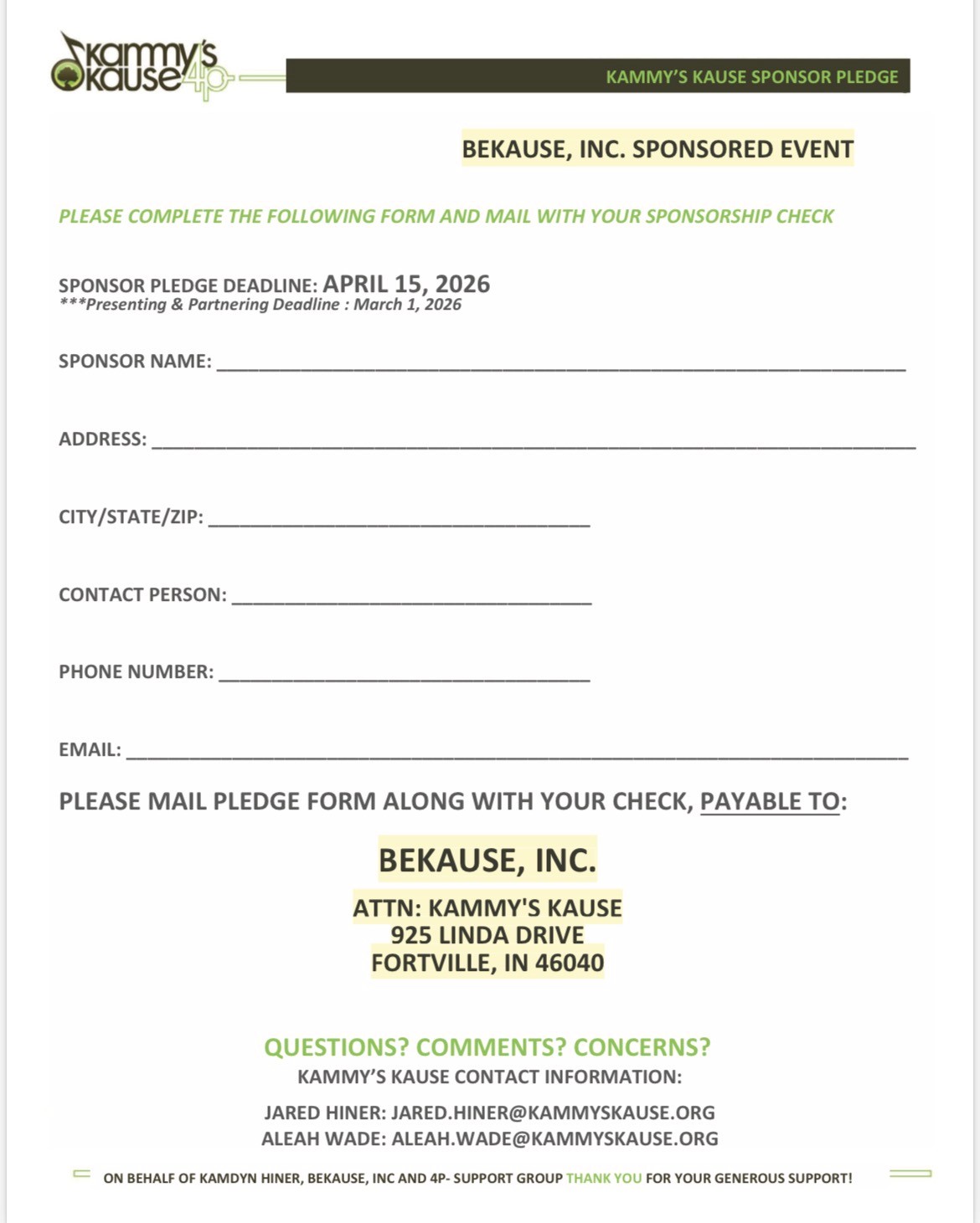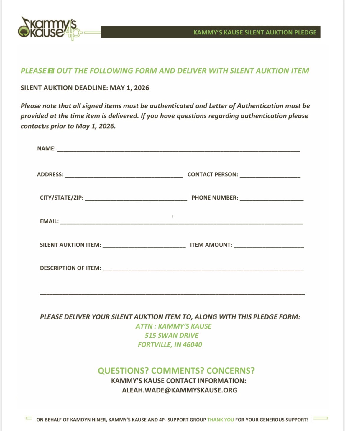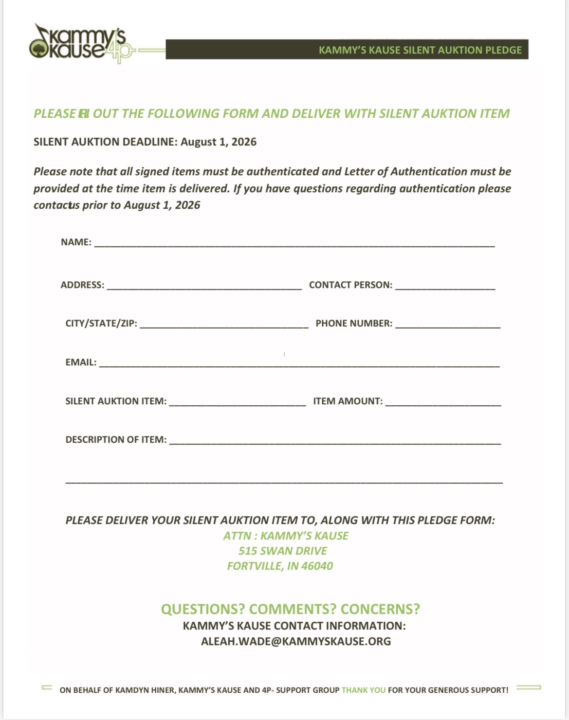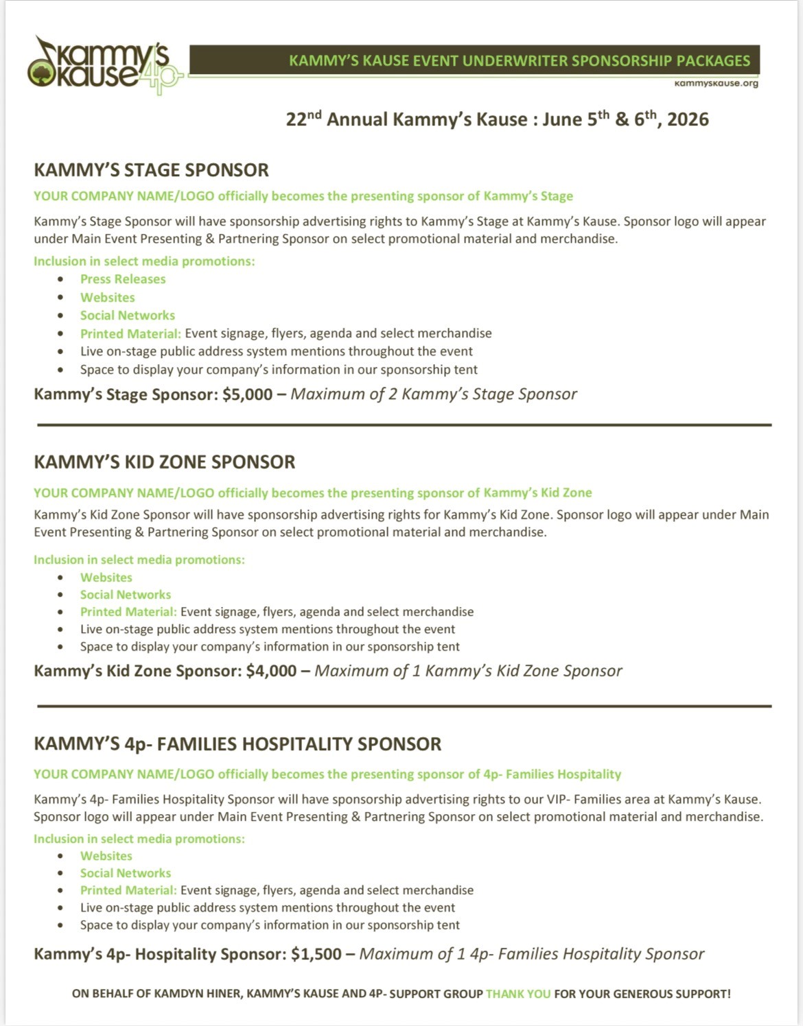 We are so glad you are interested in supporting Kammy’s Kause!